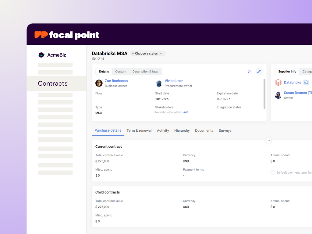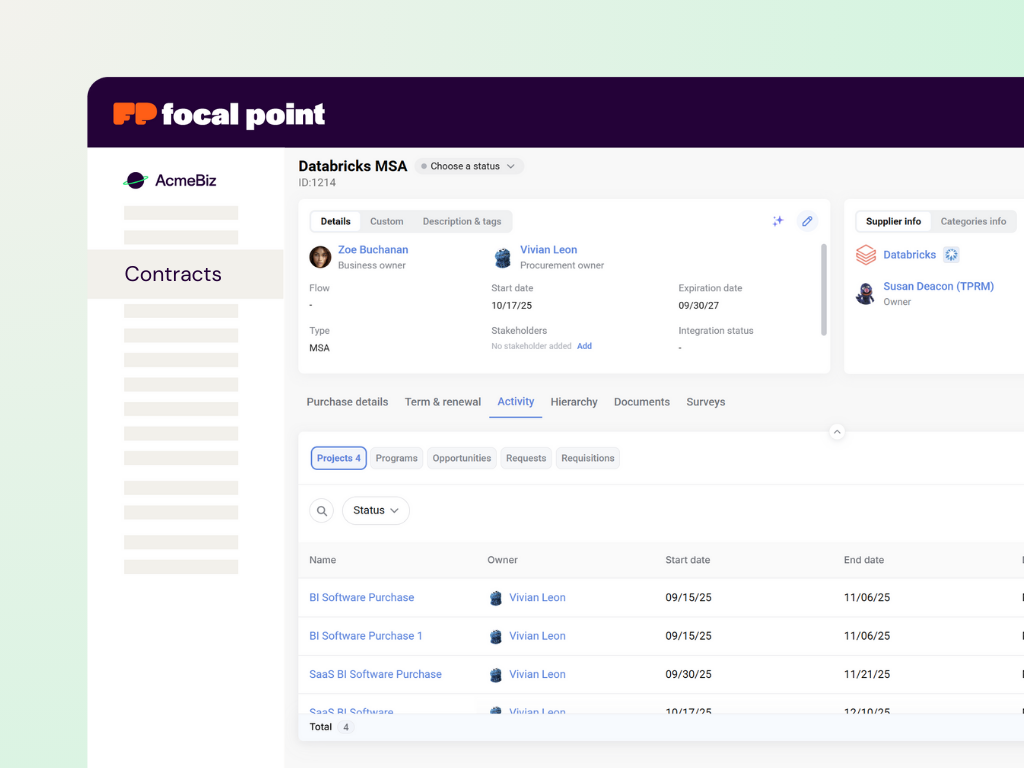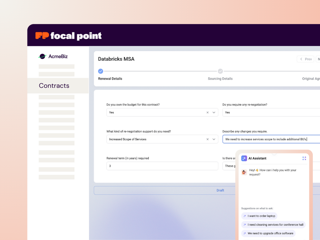 “Focal Point has significantly enhanced our procurement department’s efficiency by reducing cycle times and establishing a single source of truth for indirect procurement. This tool has streamlined communications and improved our decision-making processes, thereby contributing to a more effective procurement strategy.”